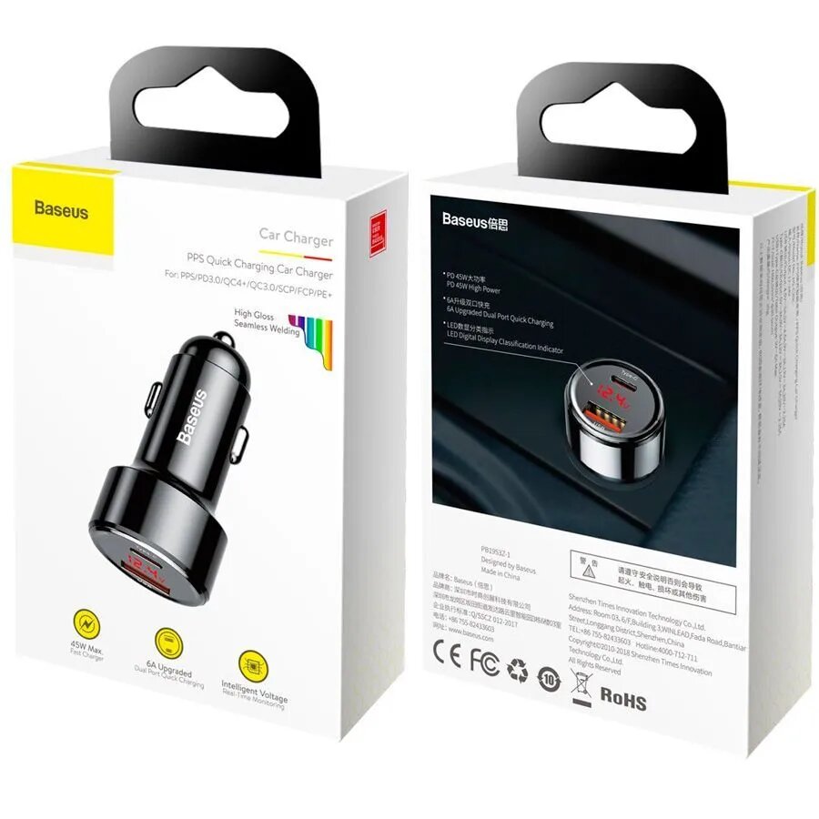 Автомобильное зарядное устройство Baseus PPS 45W Черный
