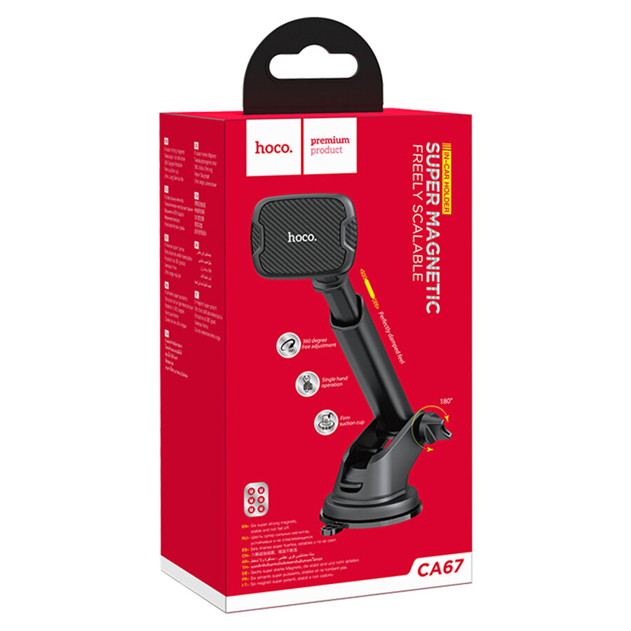 Автомобильный держатель для телефона HOCO CA67 Sagittarius, магнитный, на присоске (приборная панель/лобовое стекло), черный