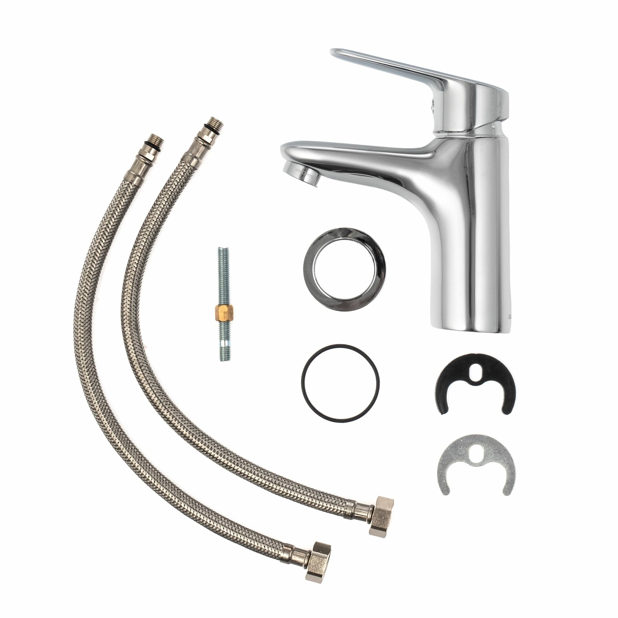 Тумба с раковиной для ванной Runo Лада 50, белый, раковина, смеситель, выпуск