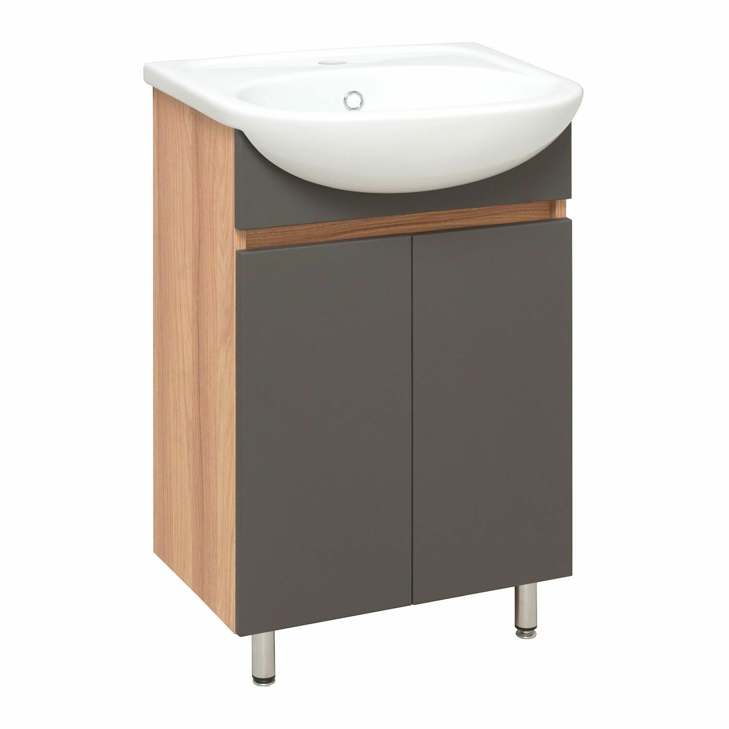 Тумба с раковиной напольная Лада 50, графит (раковина Уют)