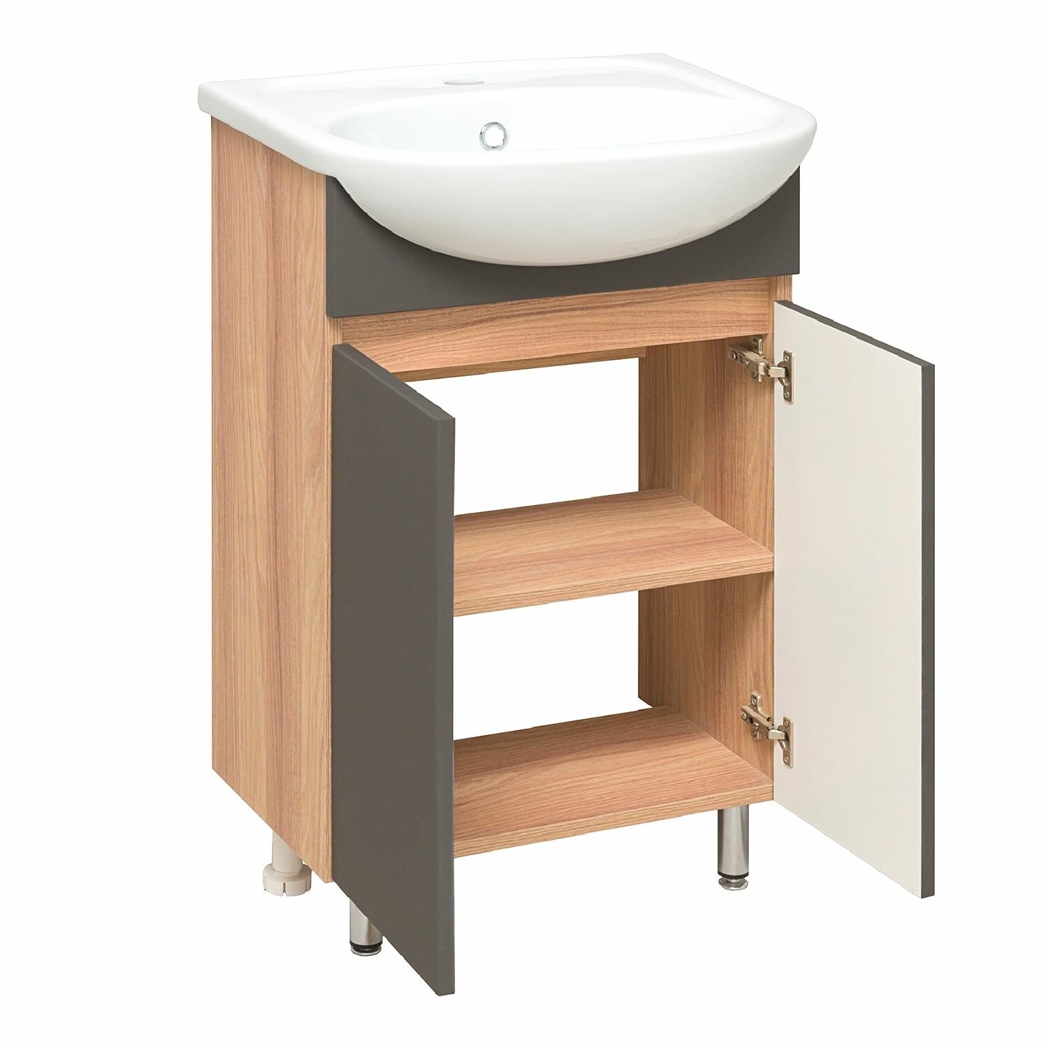 Купить Тумба с раковиной напольная Лада 50, графит (раковина Уют, смеситель, выпуск)