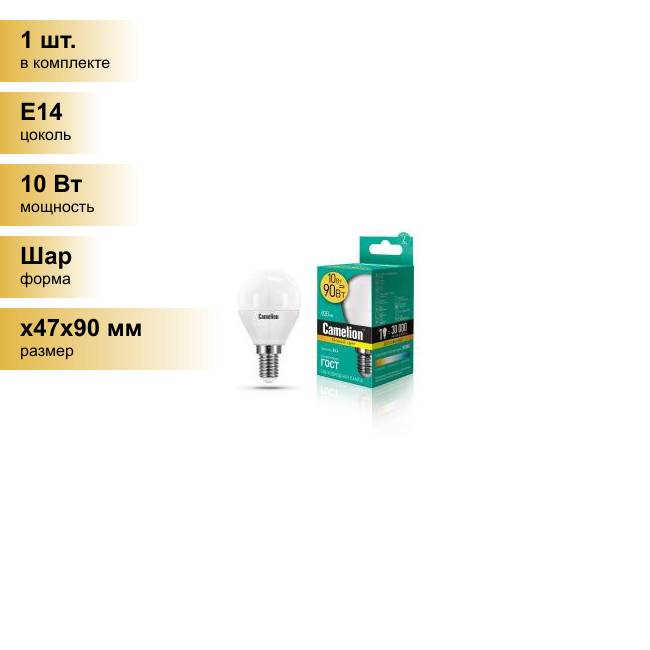 Лампочка CAMELION LED10-G45/830/E14 E14, 10 Вт, белый