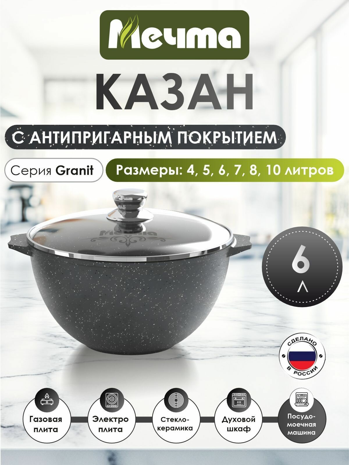 Казан Гранит 6 л, с антипригарным покрытием Мечта 2461281 .