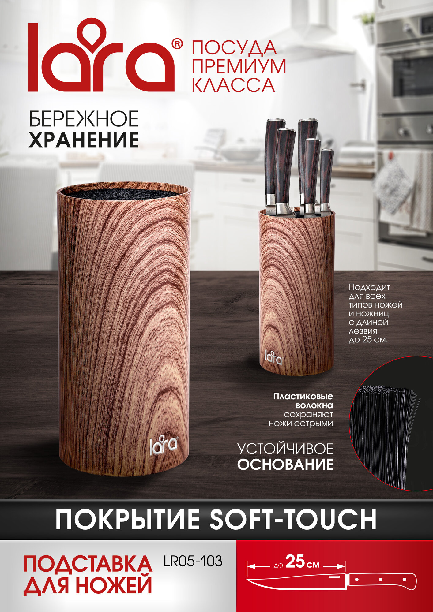 Купить Подставка для ножей LARA LR05-103 Wood/ универсальная/ круглая/ Soft touch
