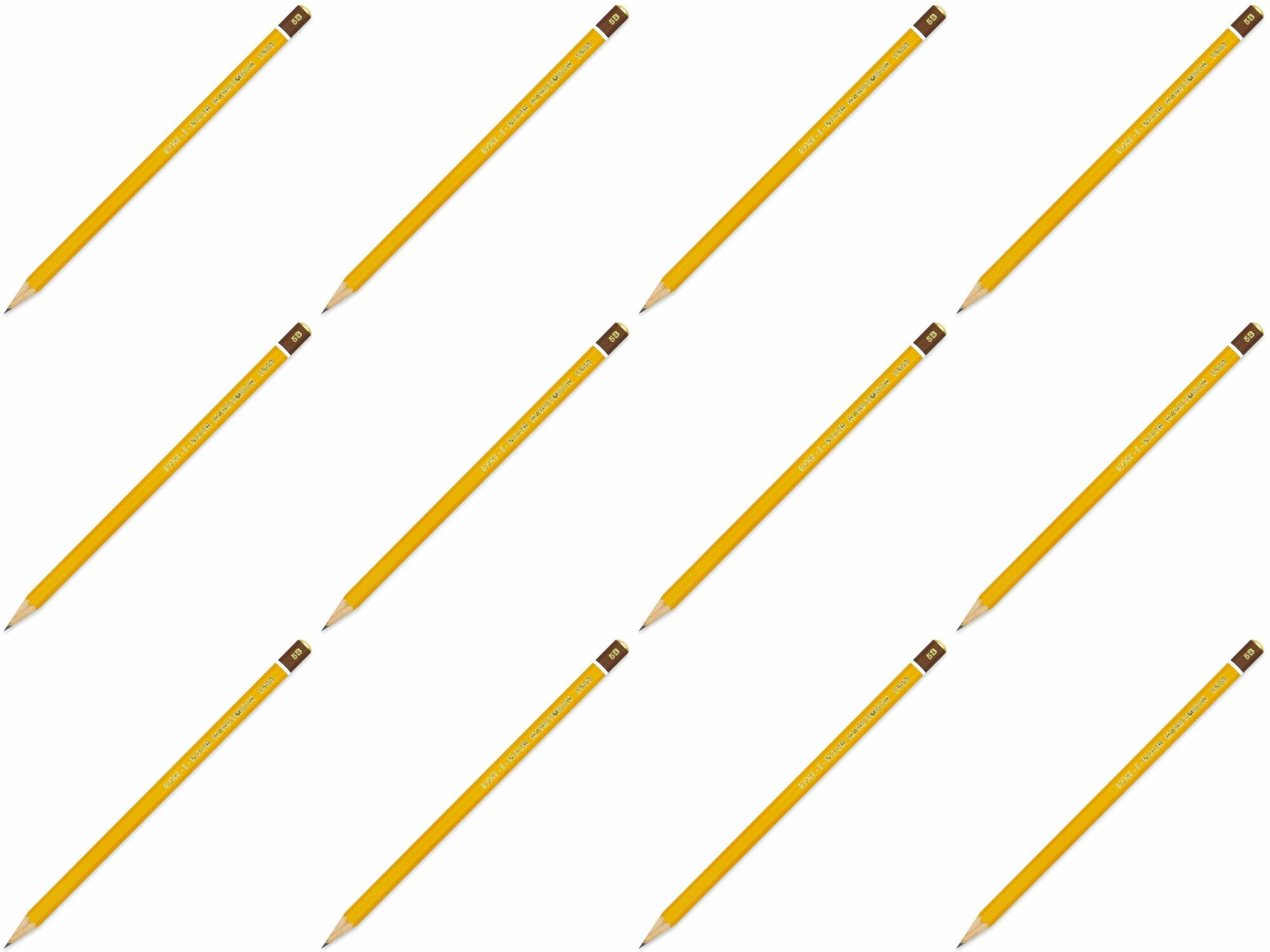 Карандаш чернографитный Koh-I-Noor 1500 (5В, корпус желтый, без ластика, заточенный) (150005B01170RU), 12шт.