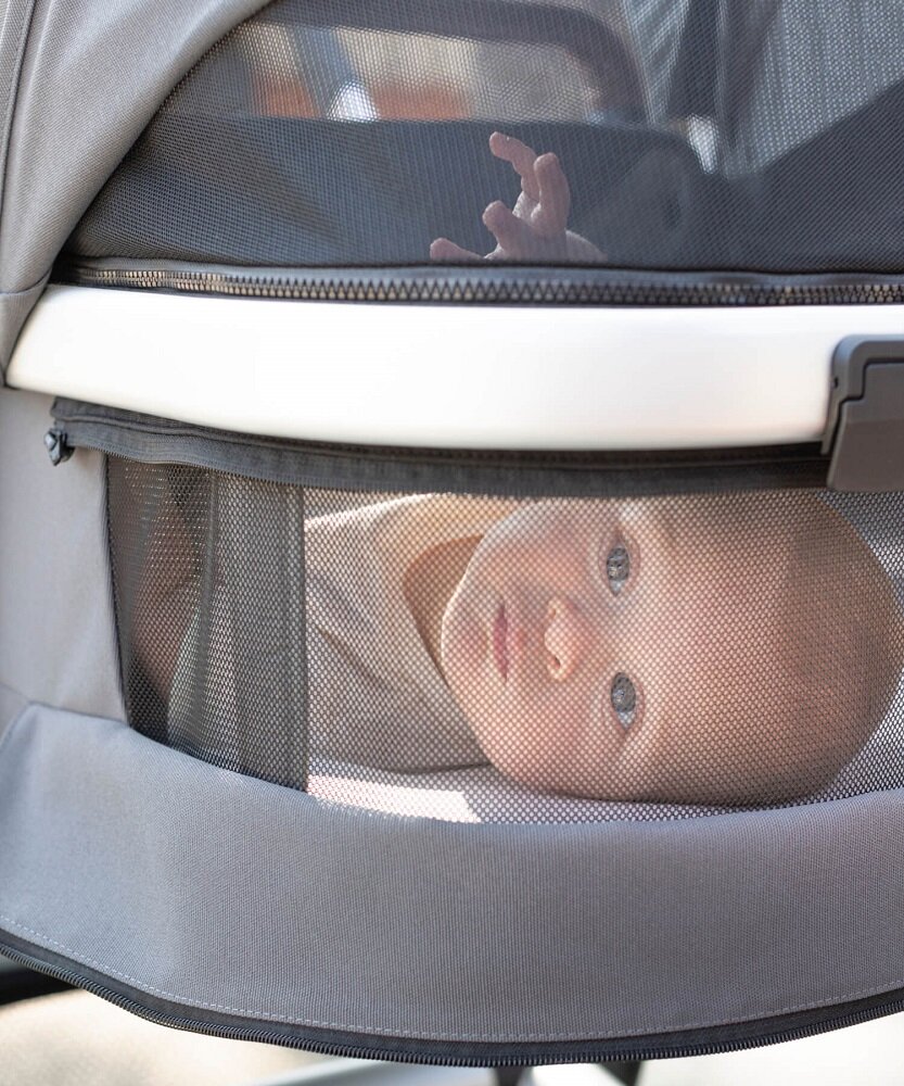 Манёвренная , легкая, очень сдержанный и стильный дизайн . Она выполнена из натуральных гипоаллергенных материалов. Снаружи - плотная ткань с водоотталкивающей пропиткой, внутри - приятная на ощупь, мягкая отделка. Дно деревянное. В комплекте идет дышащий матрасик. Огромный плюс в круговой вентиляции, летом ребёнку не будет жарко. Легко собирается и разбирается . Очень компактная в хранении . |