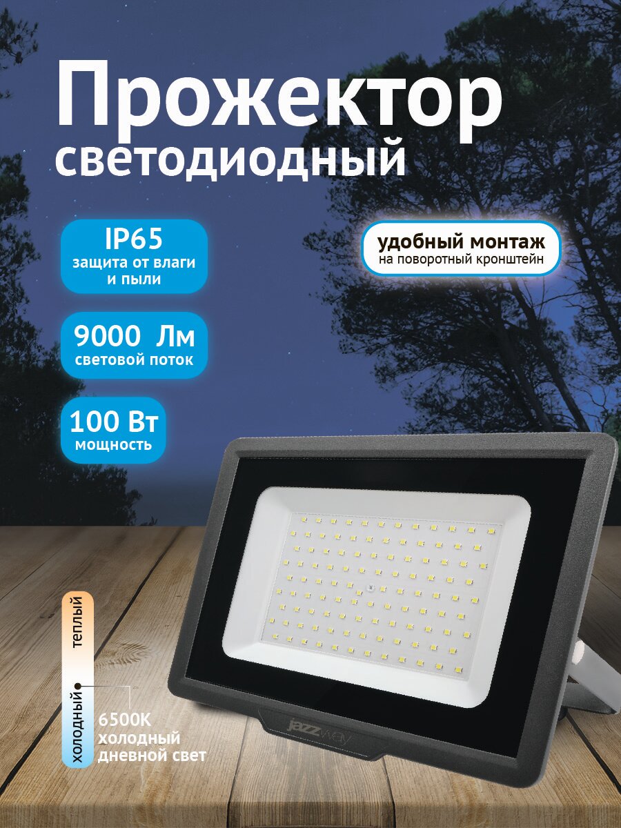 Прожектор светодиодный jazzway PFL-C3 100W (6500K IP65), 100 Вт, свет: холодный белый