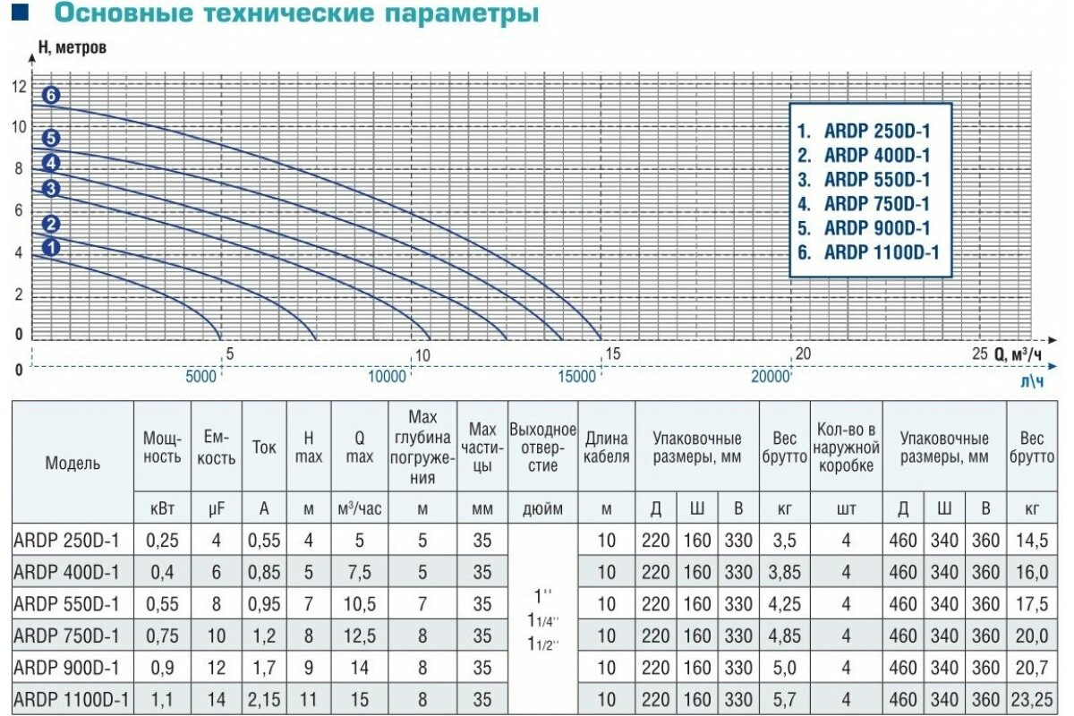 | Максимальный напор | 7 м |