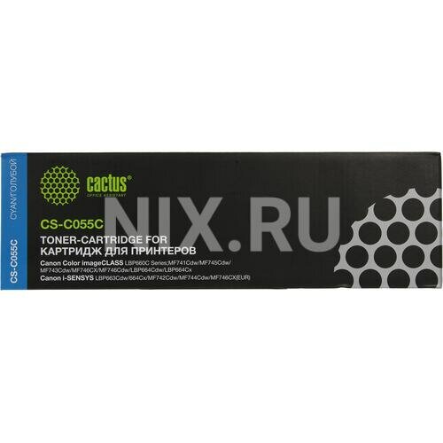 Картридж лазерный CACTUS (CS-C055C) для Canon LBP663Cdw/664Cx/MF746Cx/742Cd, голубой, ресурс 2100 страниц