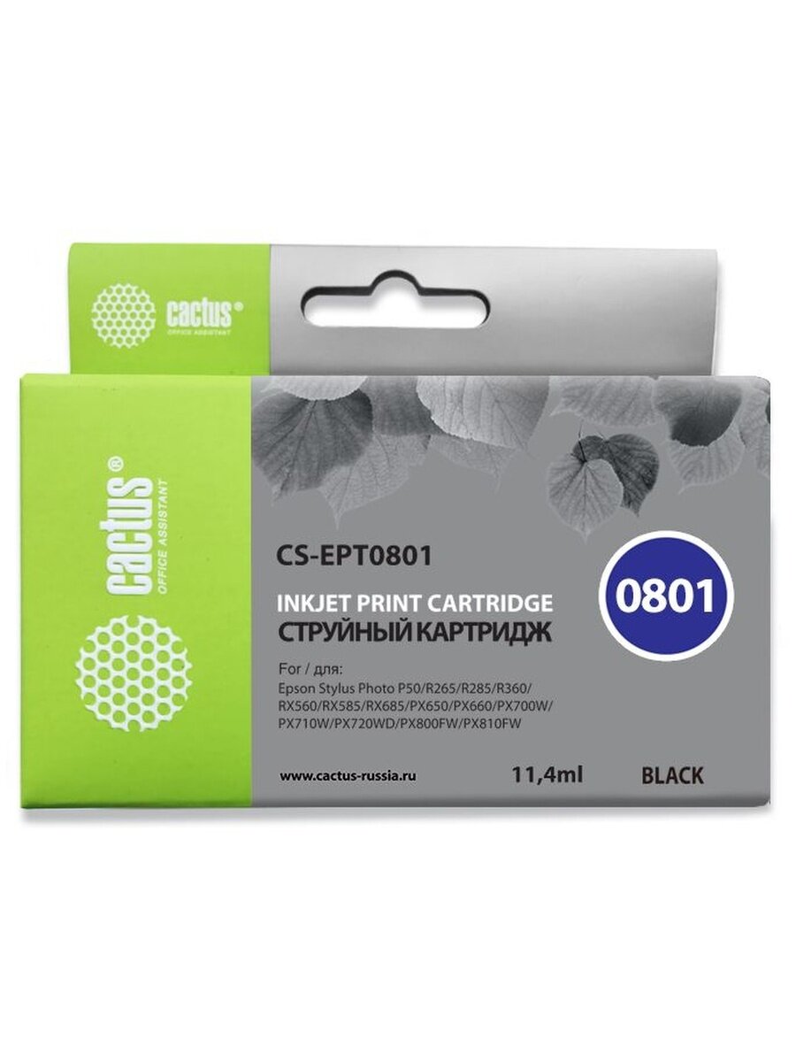 Картридж струйный Cactus CS-EPT0801 черный 11.4мл для Epson Stylus PhotoP50PX650PX660PX700PX700WPX71