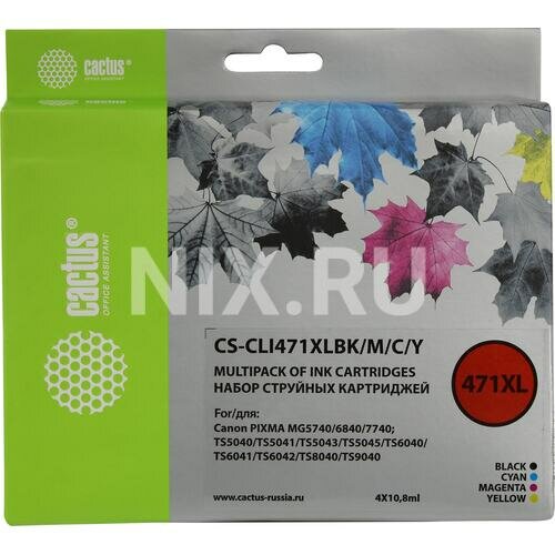 Купить Картридж струйный CACTUS (CS-CLI471XLBK/M/C/Y) для Canon TS5040/MG5740/MG6840/MG7740, цветной