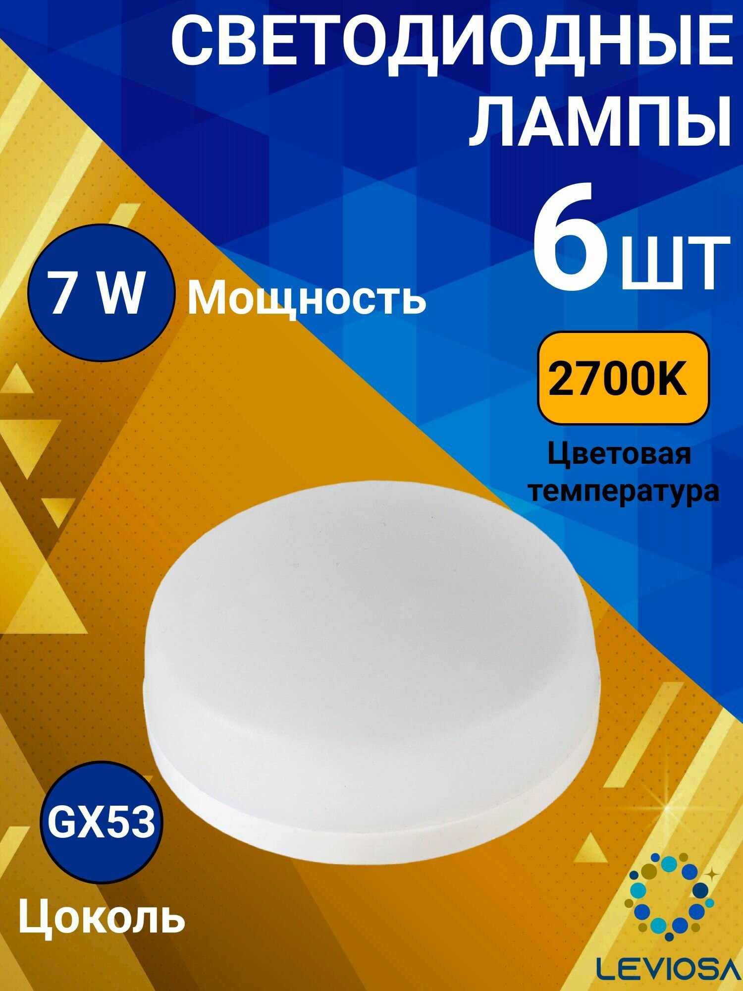 Светодиодные лампы, General, Комплект из 6 шт., Мощность 7 Вт, Цоколь GX53, Теплый свет