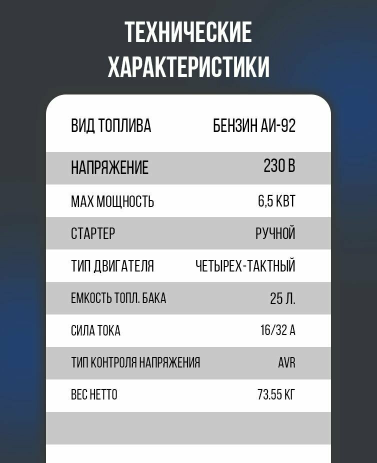 | Максимальная мощность | 6500 Вт |