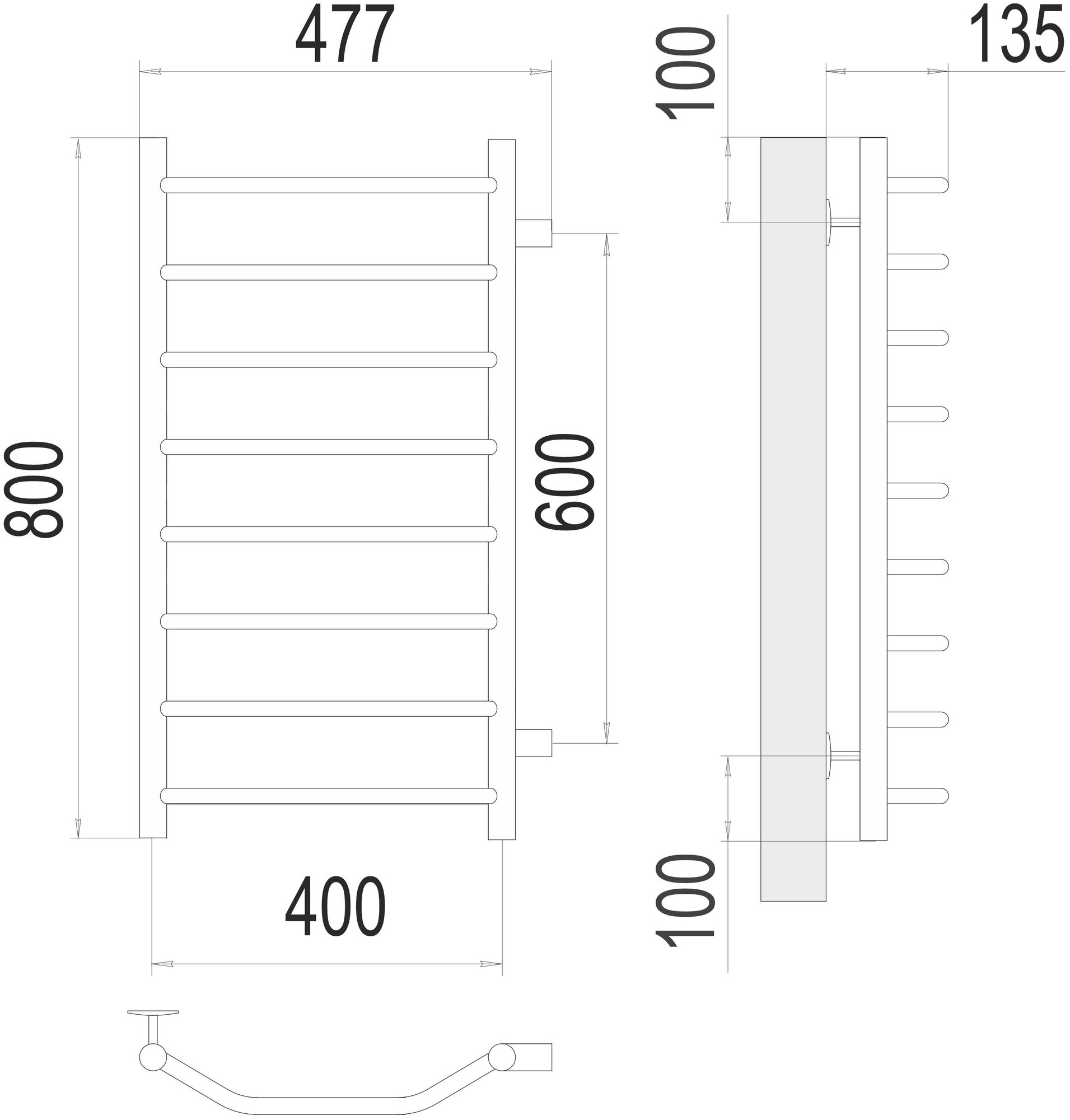 Полотенцесушитель водяной с боковым подключением TERMINUS (Терминус) Виктория П8 400х800 б/п 500 мм, гарантия 10 лет