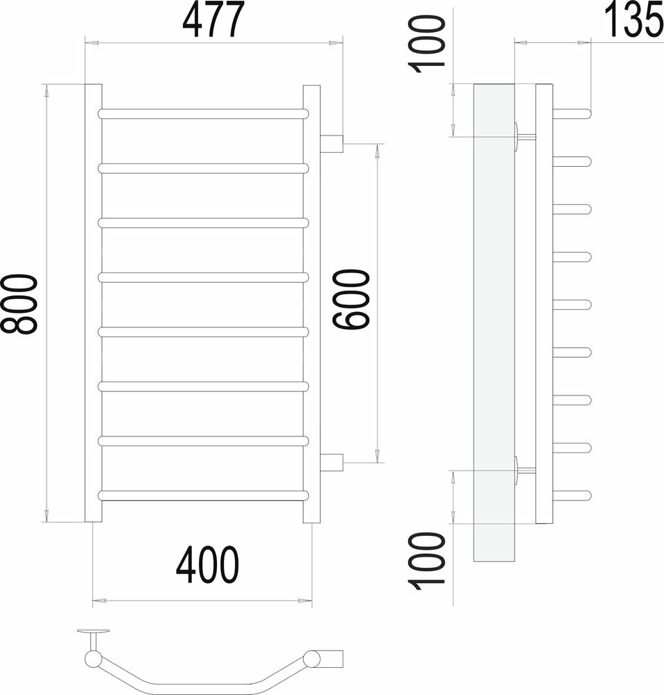 Купить Полотенцесушитель водяной Terminus Виктория П8 400x800 с боковым подключением 600