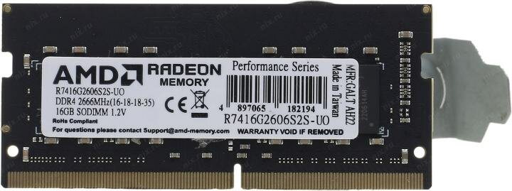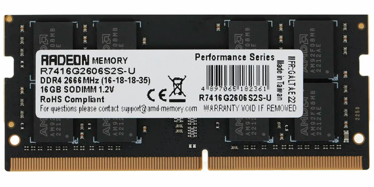 Оперативная память AMD Radeon R7 Performance Series R7416G2606S2S-U DDR4 - 1x 16ГБ 2666МГц, для ноутбуков (SO-DIMM), Ret