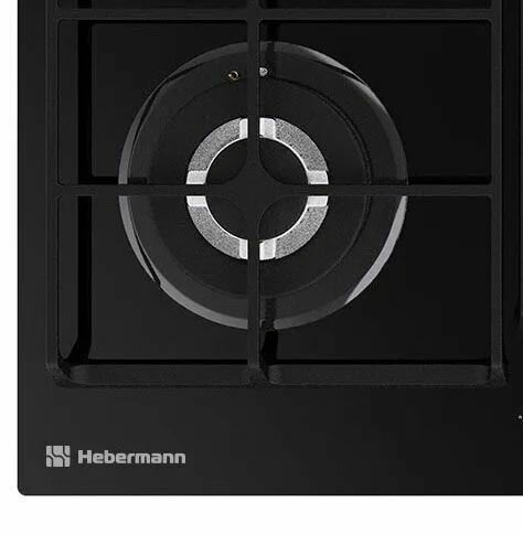 Варочная панель газовая Hebermann HBGG 302.1 B, материал поверхности: закалённое стекло, материал решёток: чугун, термостойкие ручки Hitech, управление: Механическое, Электроподжиг, Газ-контроль