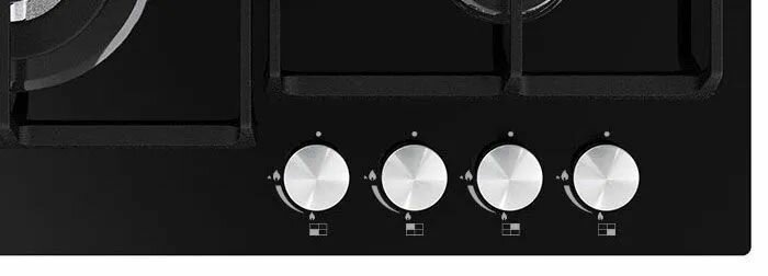 Варочная панель, газовая Hebermann HBGG 604.1 B, Материал поверхности: Закалённое стекло Материал решёток: Чугун Термостойкие ручки Hitech Управление: Механическое, Электроподжиг, Газ-контроль