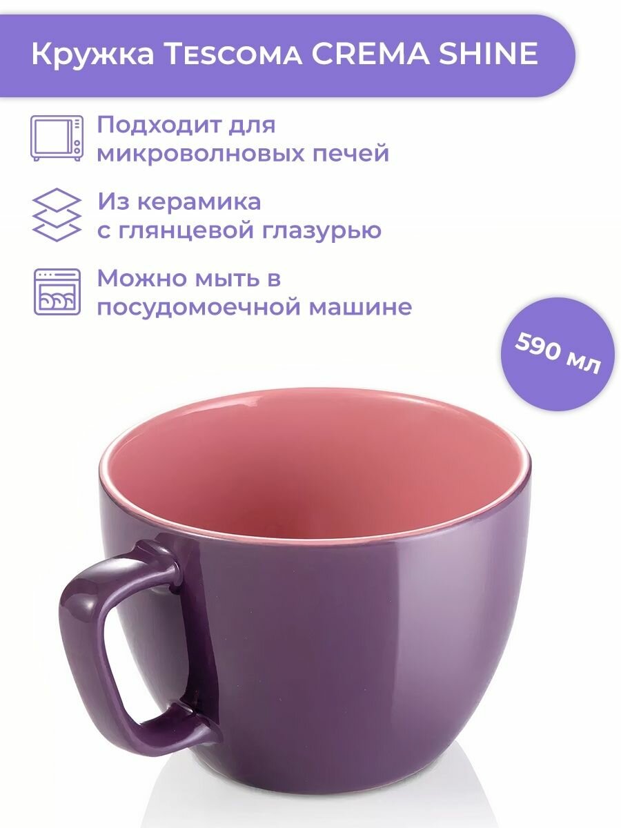 Купить Кружка большая Tescoma Crema Shine фиолетовая, 590 мл