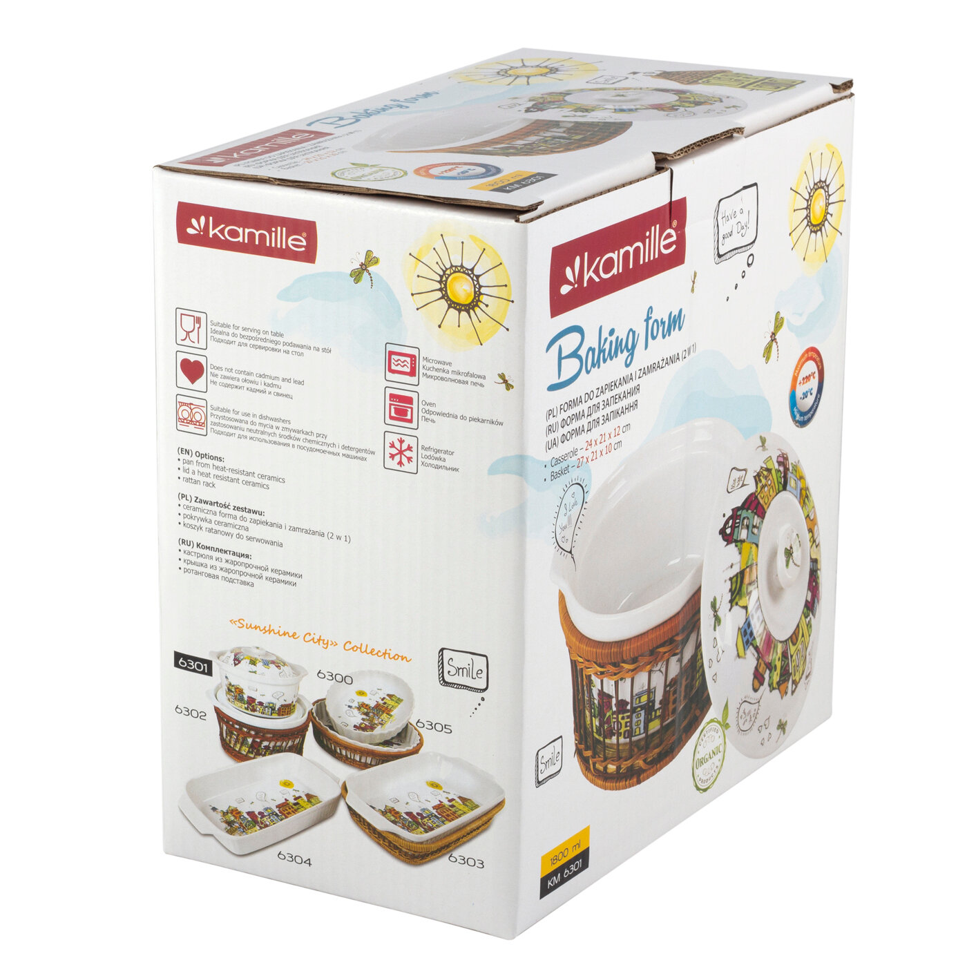 Кастрюля керамическая 1,8 л. с крышкой Kamille KM-6301 (24х21х12 см) в ротанговой корзинке (1,8 л. / белый)
