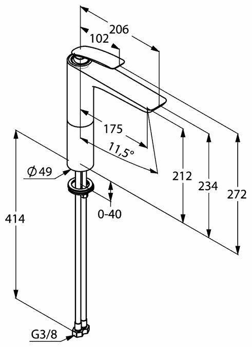 Высокий смеситель на столешницу Kludi Balance 21,2см, арт. 522960575, неповоротный излив, без донного клапана
