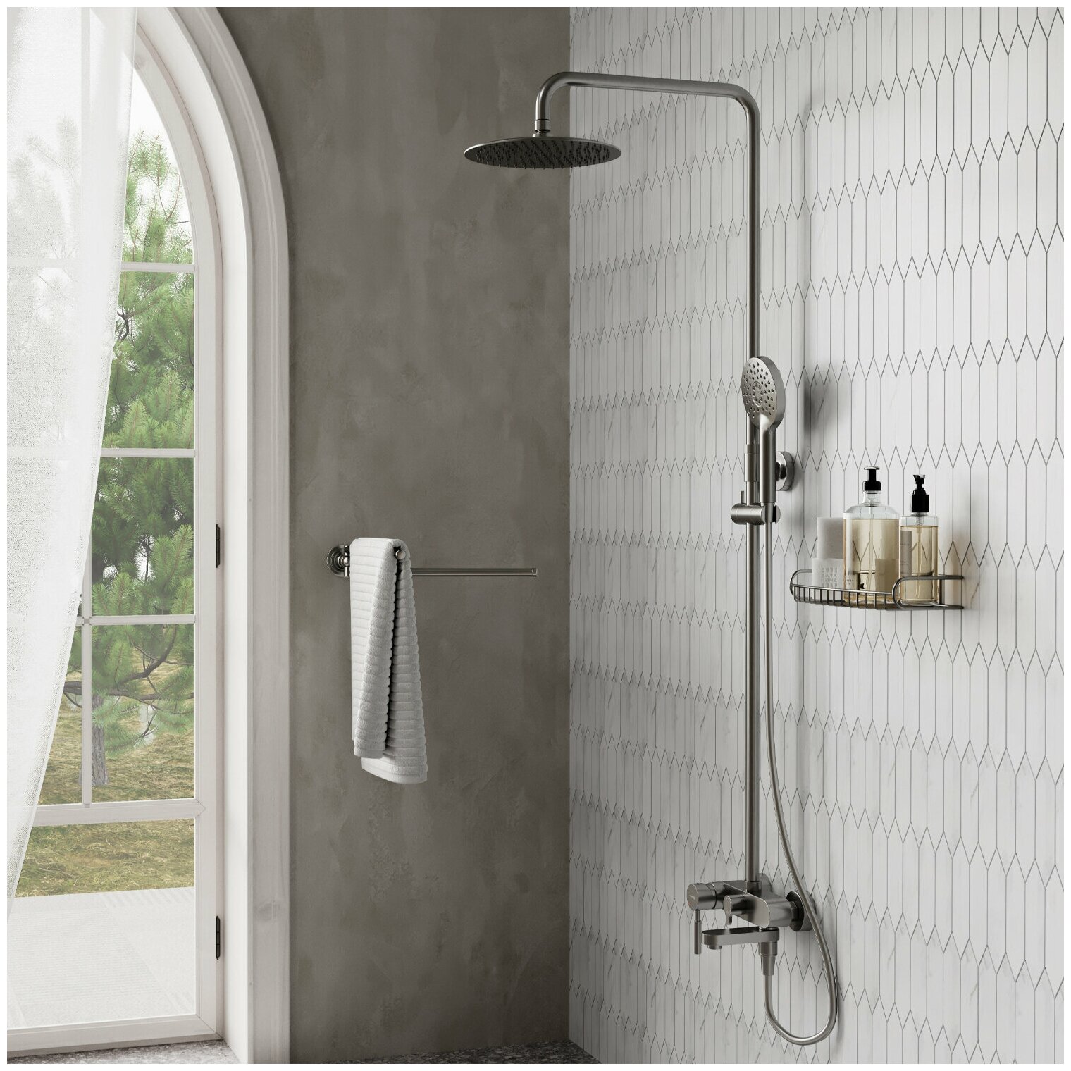 Душевая стойка Wasserkraft A14201 никель матовая