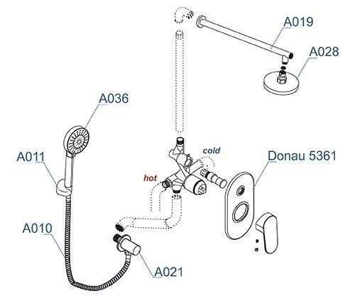 Donau A14028 Встраиваемый комплект для ванны/душа WasserKRAFT хром