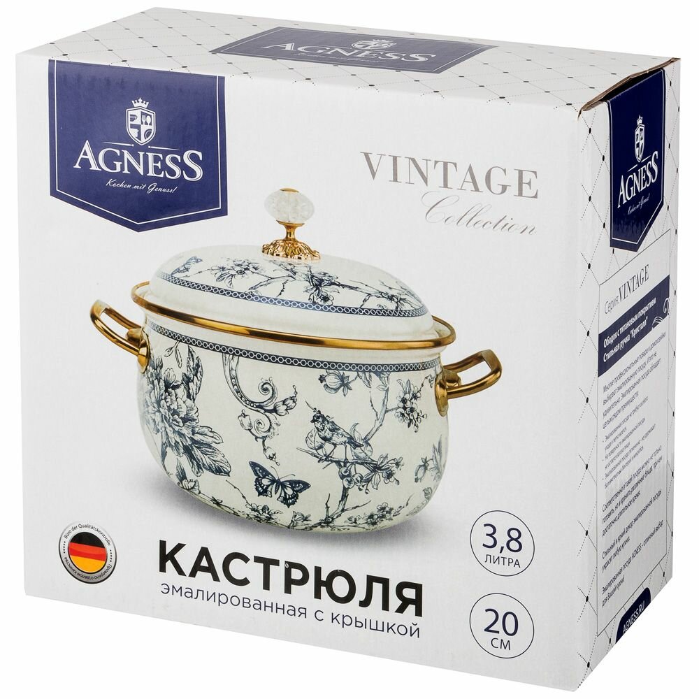 Кастрюля Agness эмалированная с крышкой, серия винтаж, 4,8л, диаметр=22см