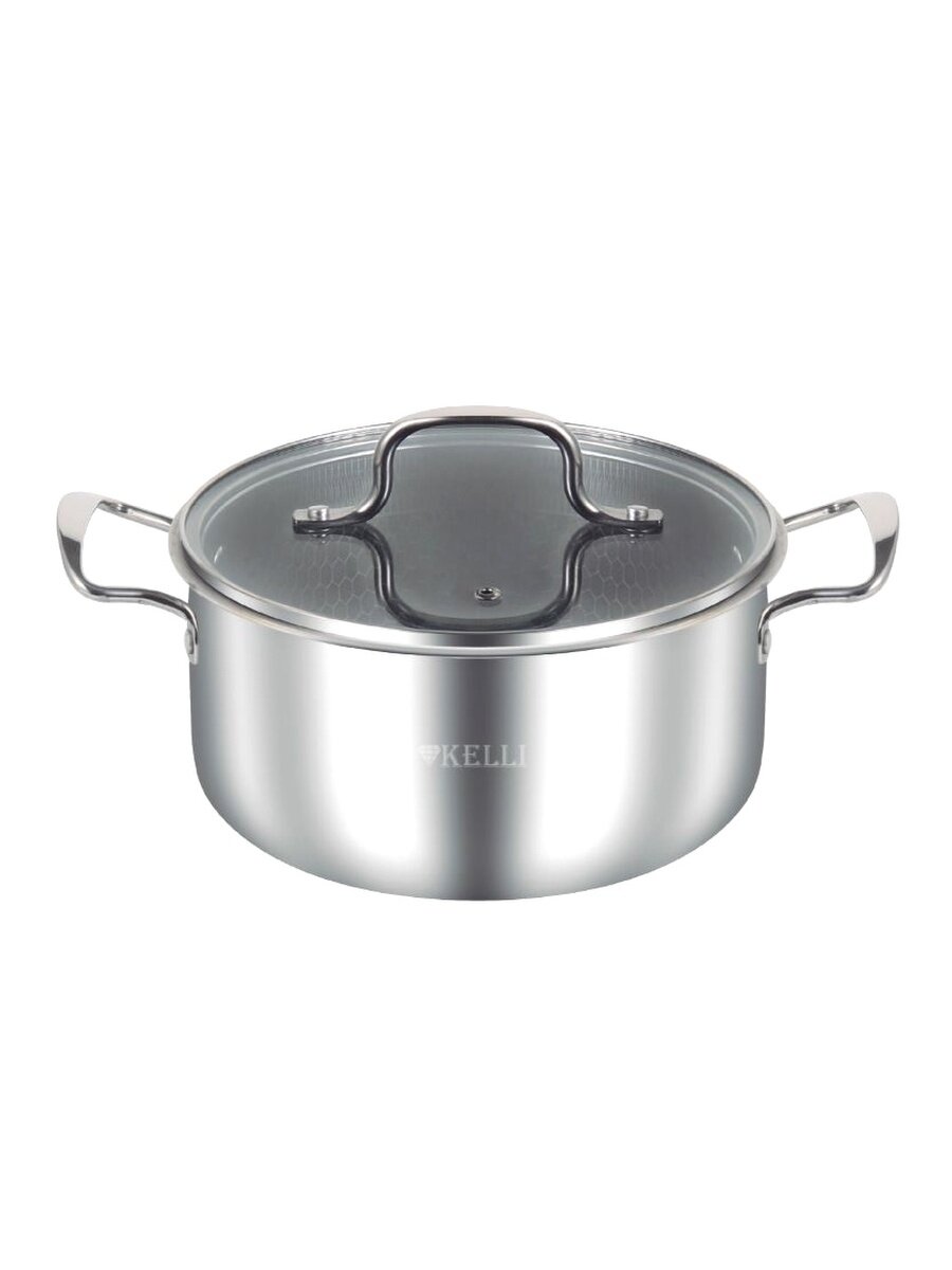 Кастрюля Kelli KL-4290-18, нержавеющая сталь, индукция, жаропрочная, 2,2 л