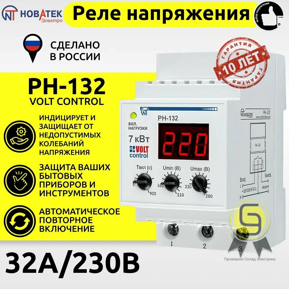 Реле напряжения РН-132 Volt Control 32А Новатек-Электро