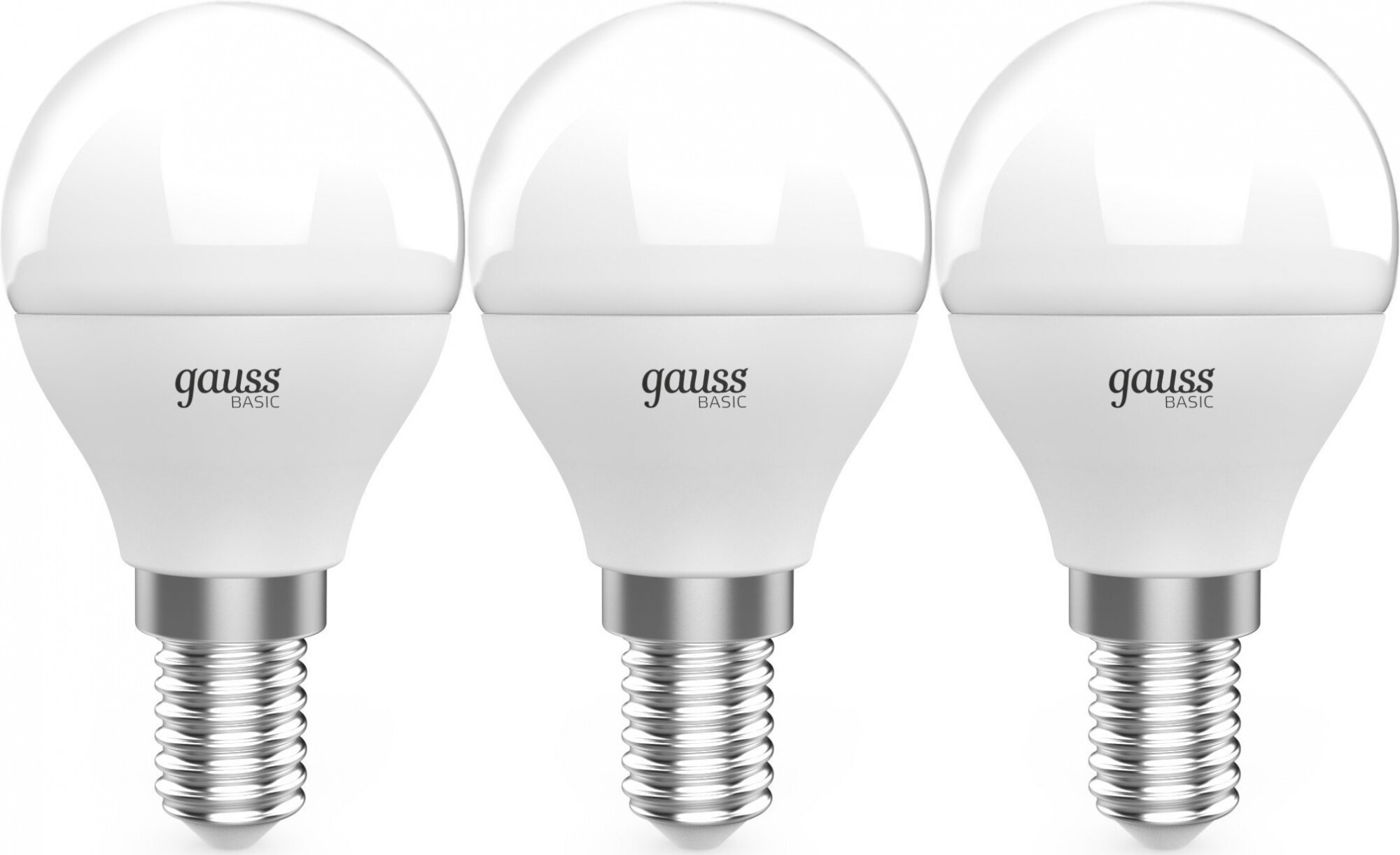 Лампочка светодиодная E14 Шар 5,5W теплый свет 3000K (3 лампы в комплекте) Gauss Basic