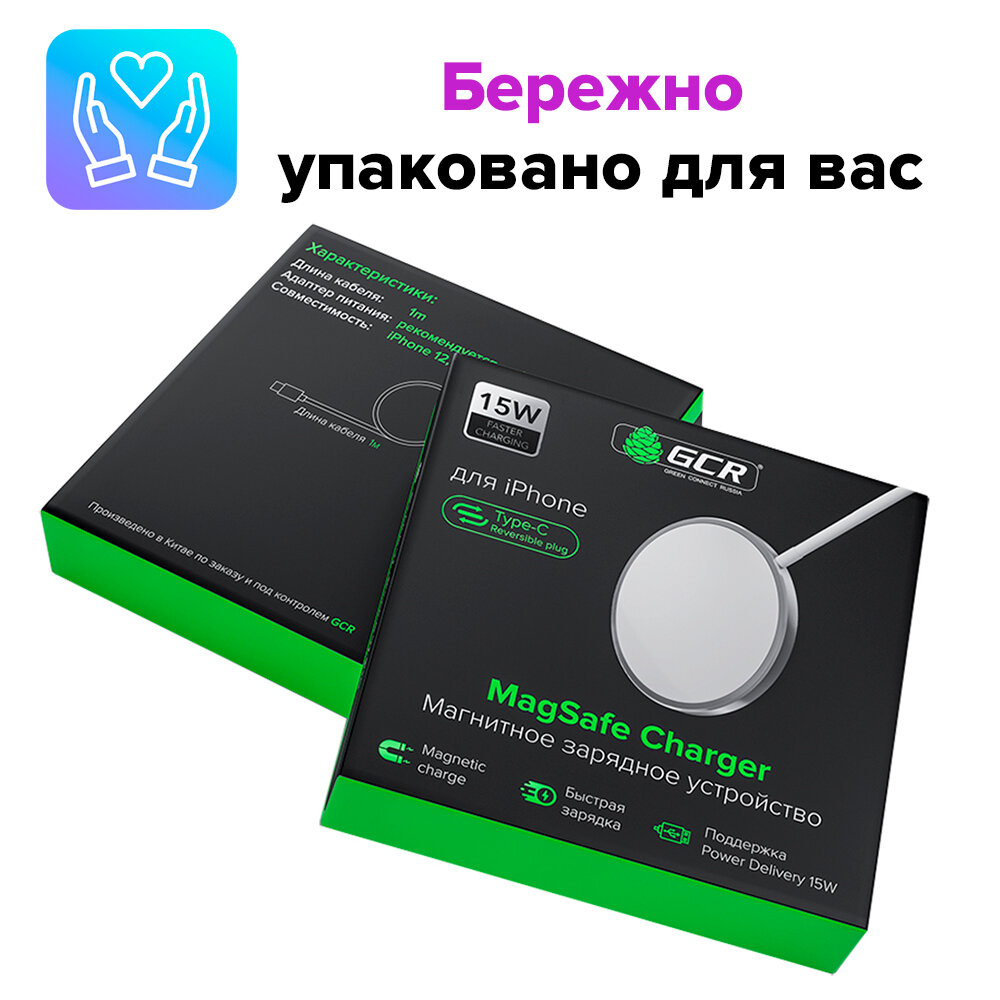 Магнитное зарядное устройство MagSafe GCR GCR-52594 для зарядки iPhone 12, 15W, USB TypeC GCR-52594 .