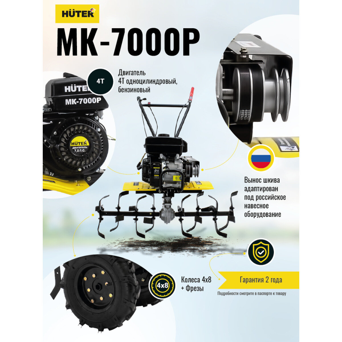 Мотоблок бензиновый Huter MK-7000P, 7 л.с.