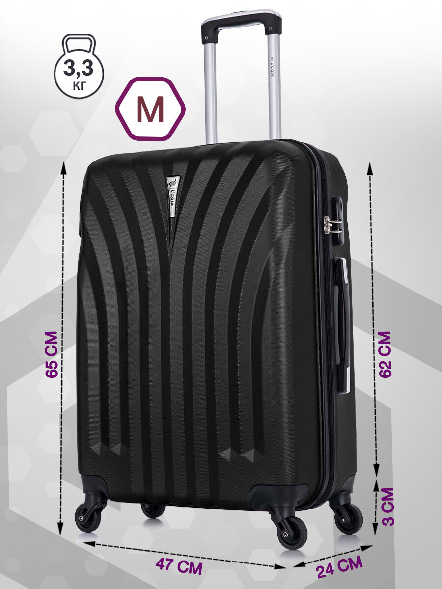 Чемодан на колесах M средний, черный - Чемодан ABS - пластик, семейный Lcase