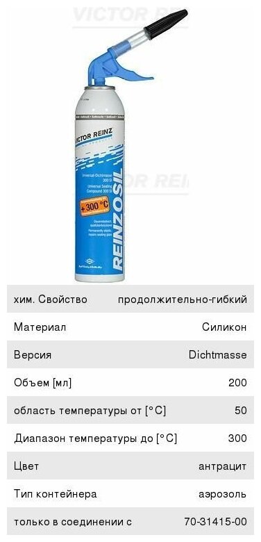 Герметик силиконовый аэрозоль 200 мл от -50c до +300c,320c reinzosil victor reinz 70-31414-20