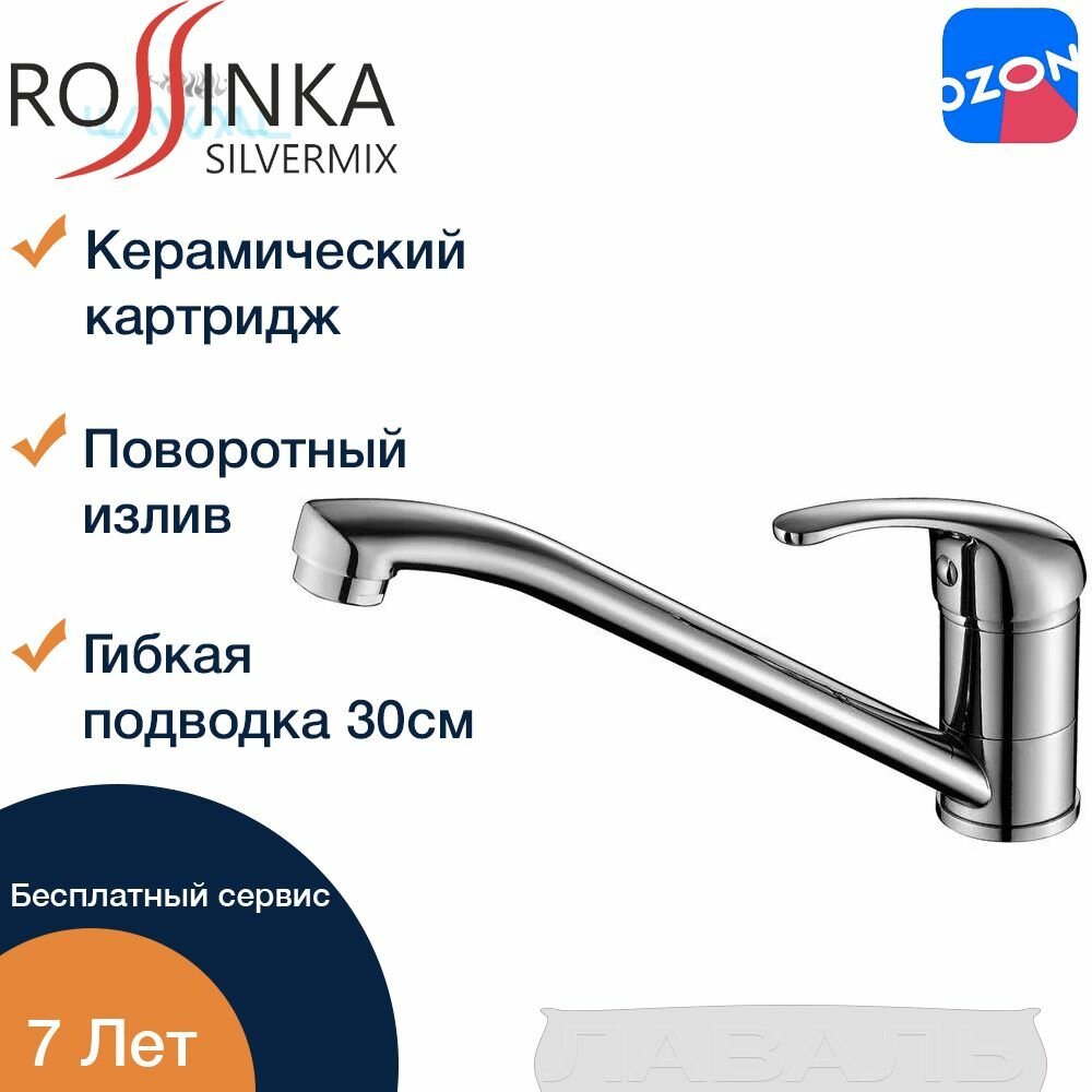Смеситель Rossinka Silvermix A35-21 для кухни поворотный излив, латунь, хром