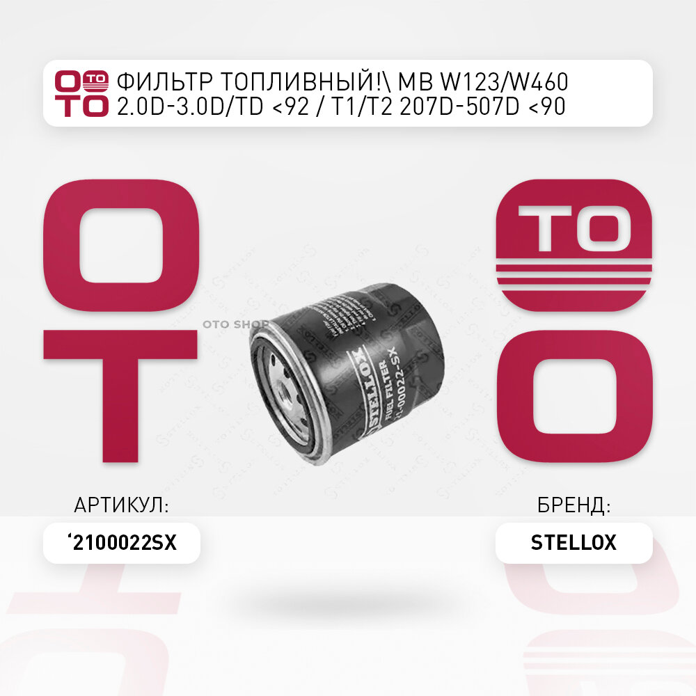 21-00022-SX_фильтр топливный!\ MB W123/W460 2.0D-3.0D/TD <92 / T1/T2 207D-507D <90 STELLOX 2100022SX