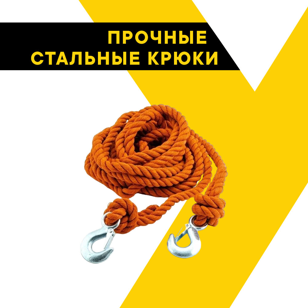 Трос буксировочный для автомобиля трехпрядный канат 10 тонн, 6 метров, 2 крюка, в пакете, топавто (TOPAUTO) 1062КП интересное:
