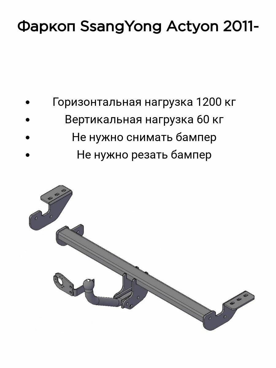 Фаркоп Трейлер 7520 для SsangYong Actyon 2WD, 4WD с 2011 г.в. (без электрики)