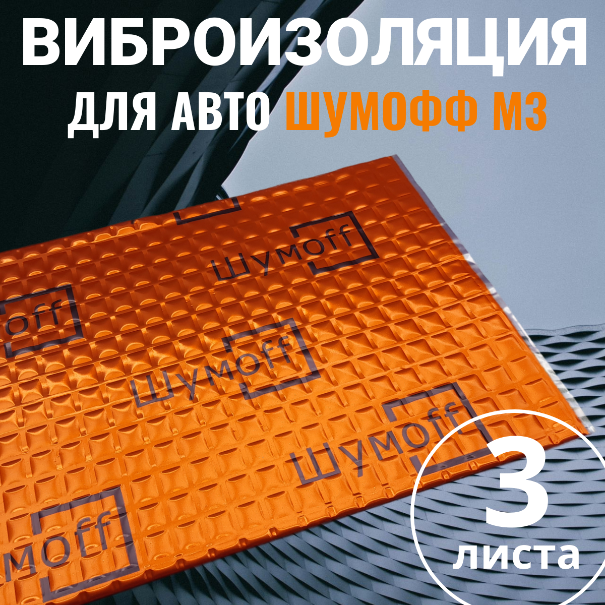 Купить Шумоизоляция для автомобиля Шумофф М3 ( 3 листа ) Виброизоляция звукоизоляция машины, вибродемпфер для дверей, арок, багажника и пола авто