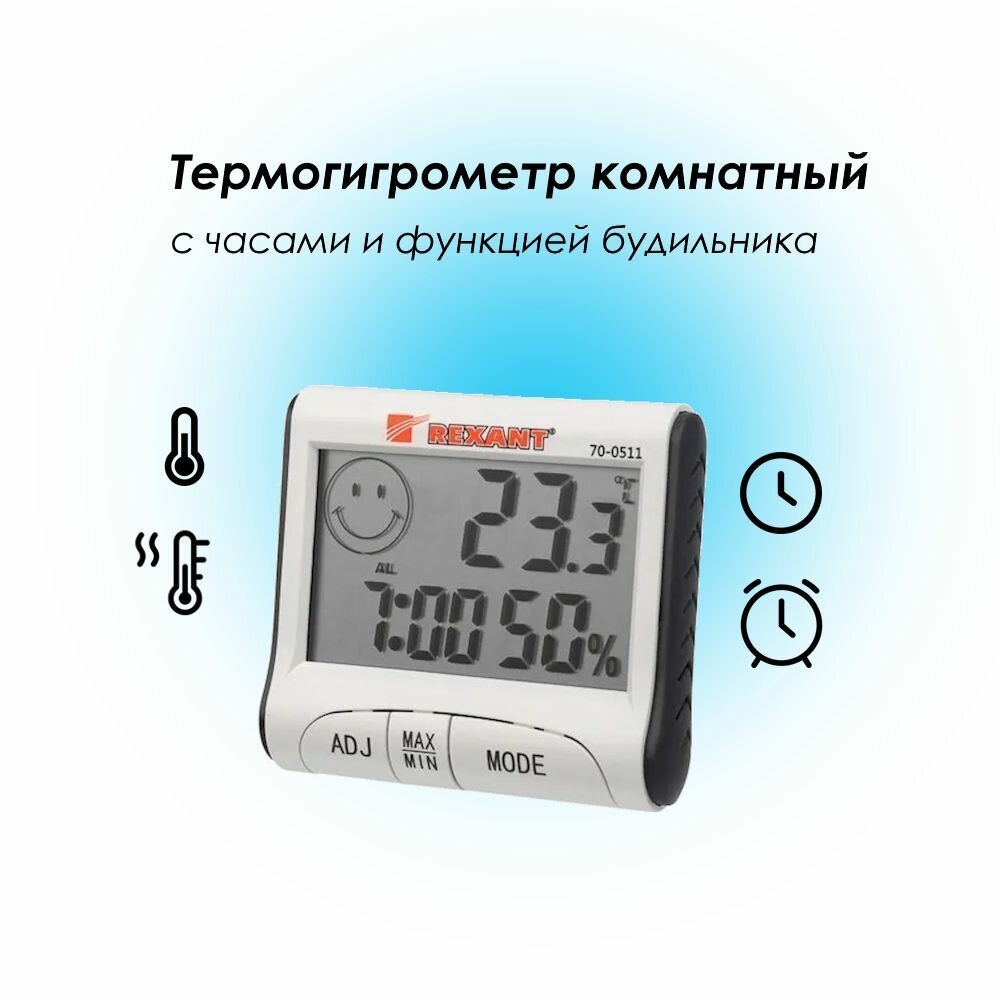 Термогигрометр REXANT комнатный с часами и функцией будильника