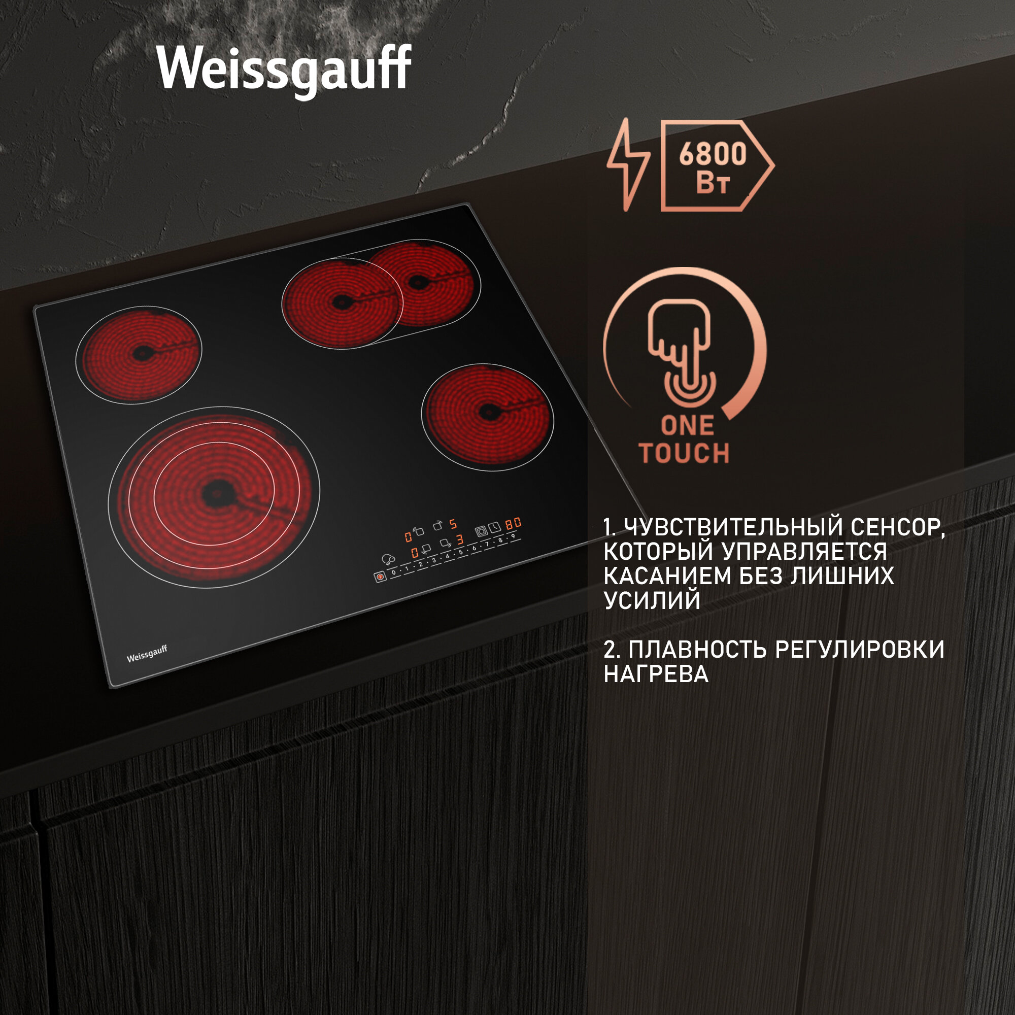 Варочная панель со слайдером Weissgauff HVF 643 BS Трёхконтурная зона расширения, 3 года гарантии, 58 см ширина, таймер интересное: