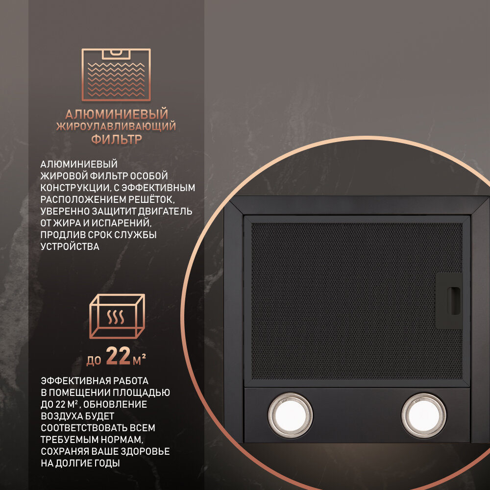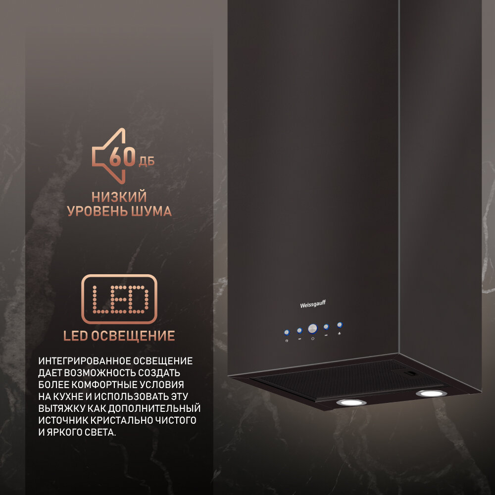 Купольная вытяжка Weissgauff Box 40 PB Black, Производительность 900 м3/ч, Низкий уровень шума, LED-освещение