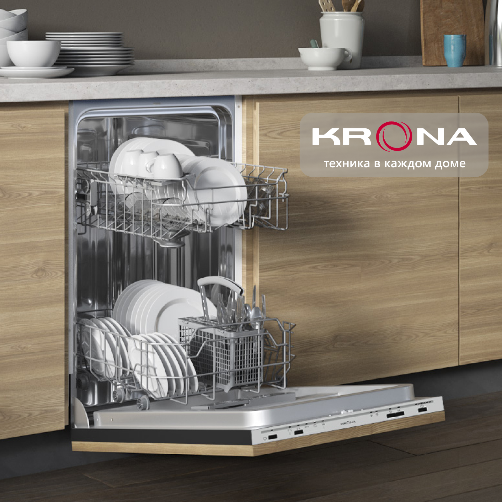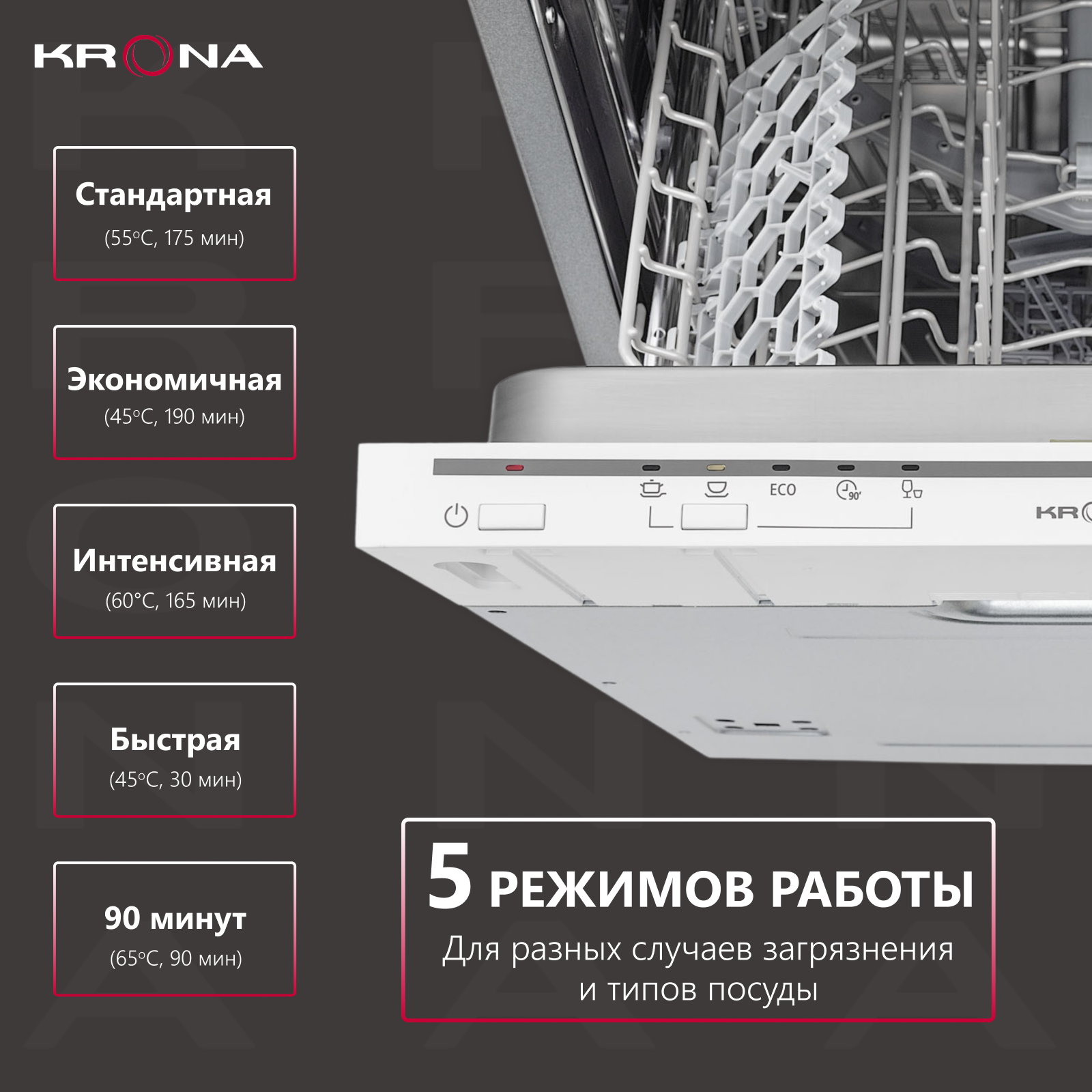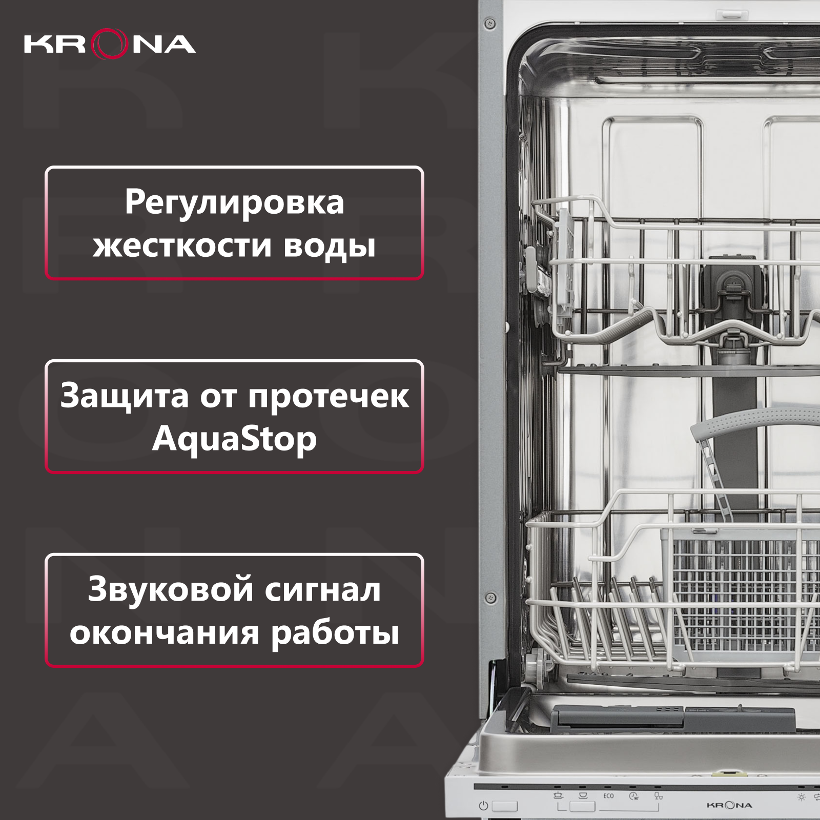 Встраиваемая посудомоечная машина Krona GARDA 45 BI, узкая, ширина 44.8см, полновстраиваемая, загрузка 9 комплектов интересное: