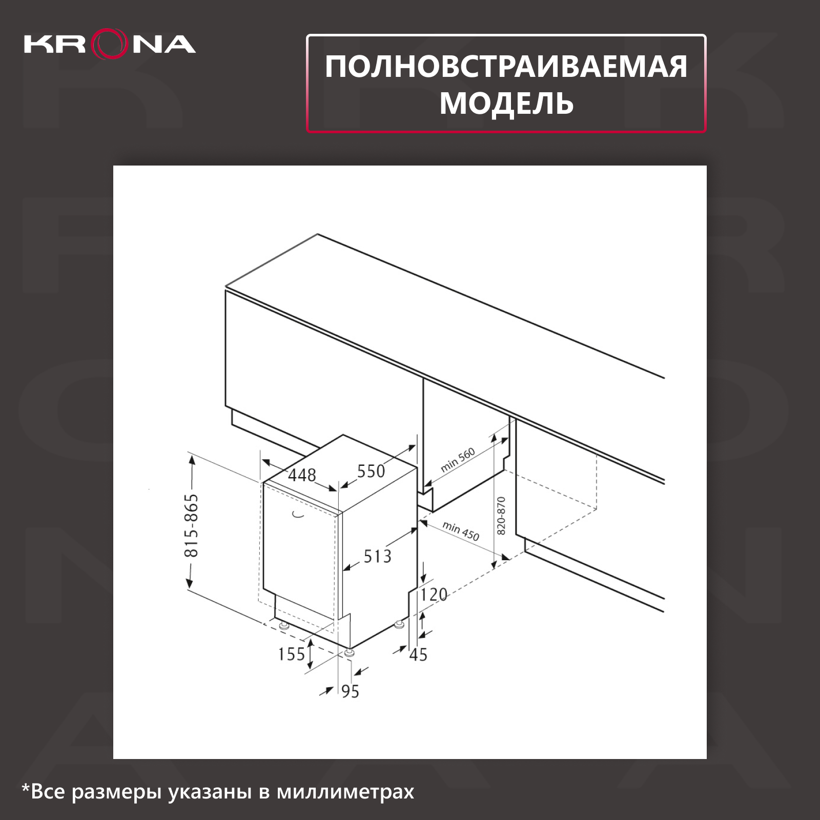 Посудомоечная машина KRONA GARDA 45 Bl встраиваемая черная