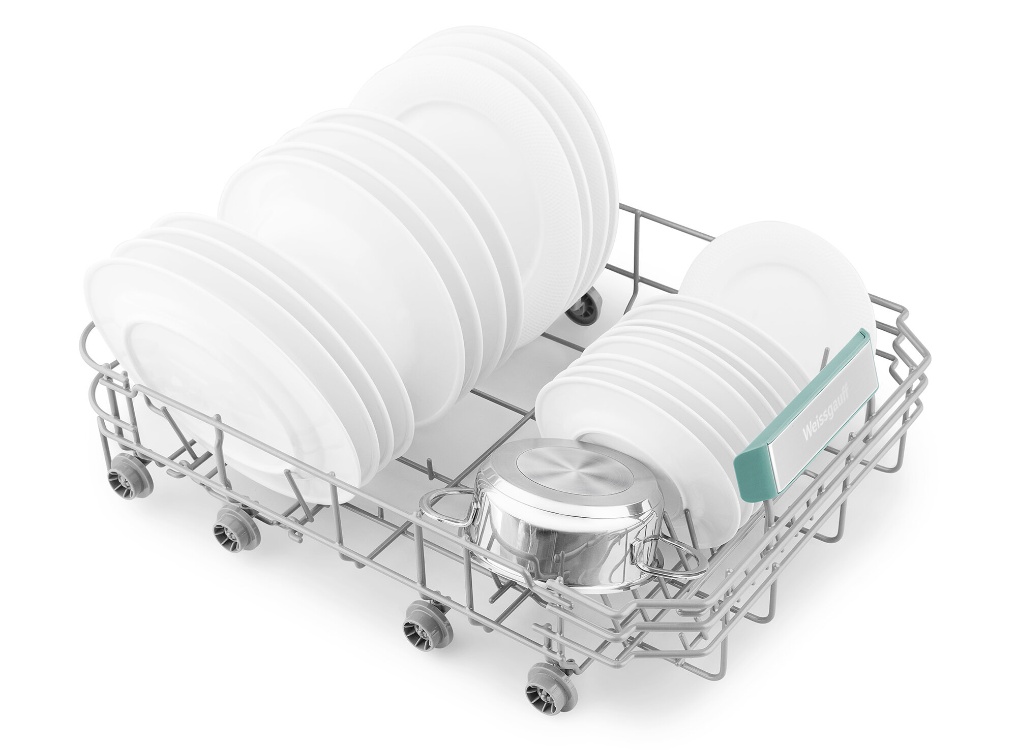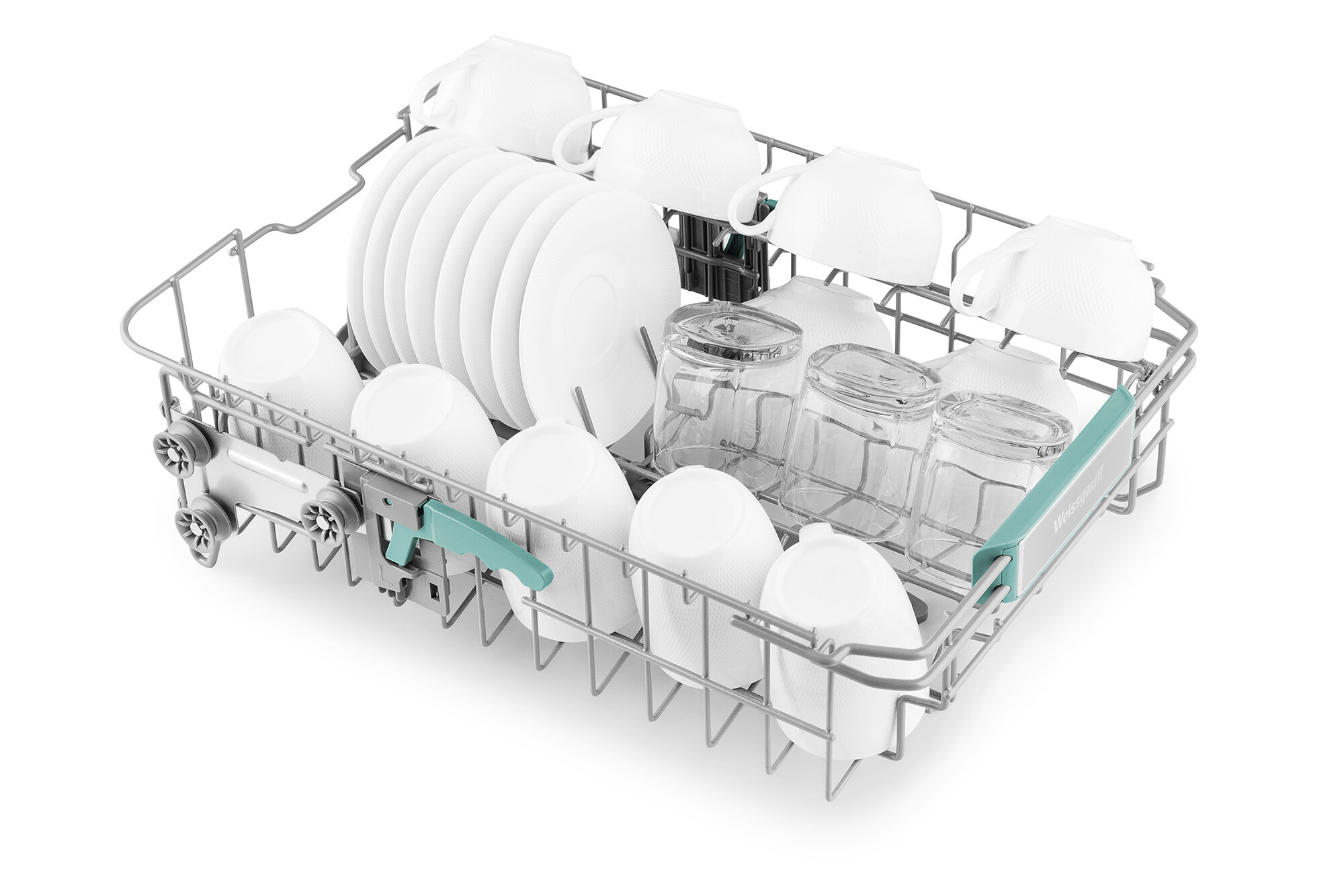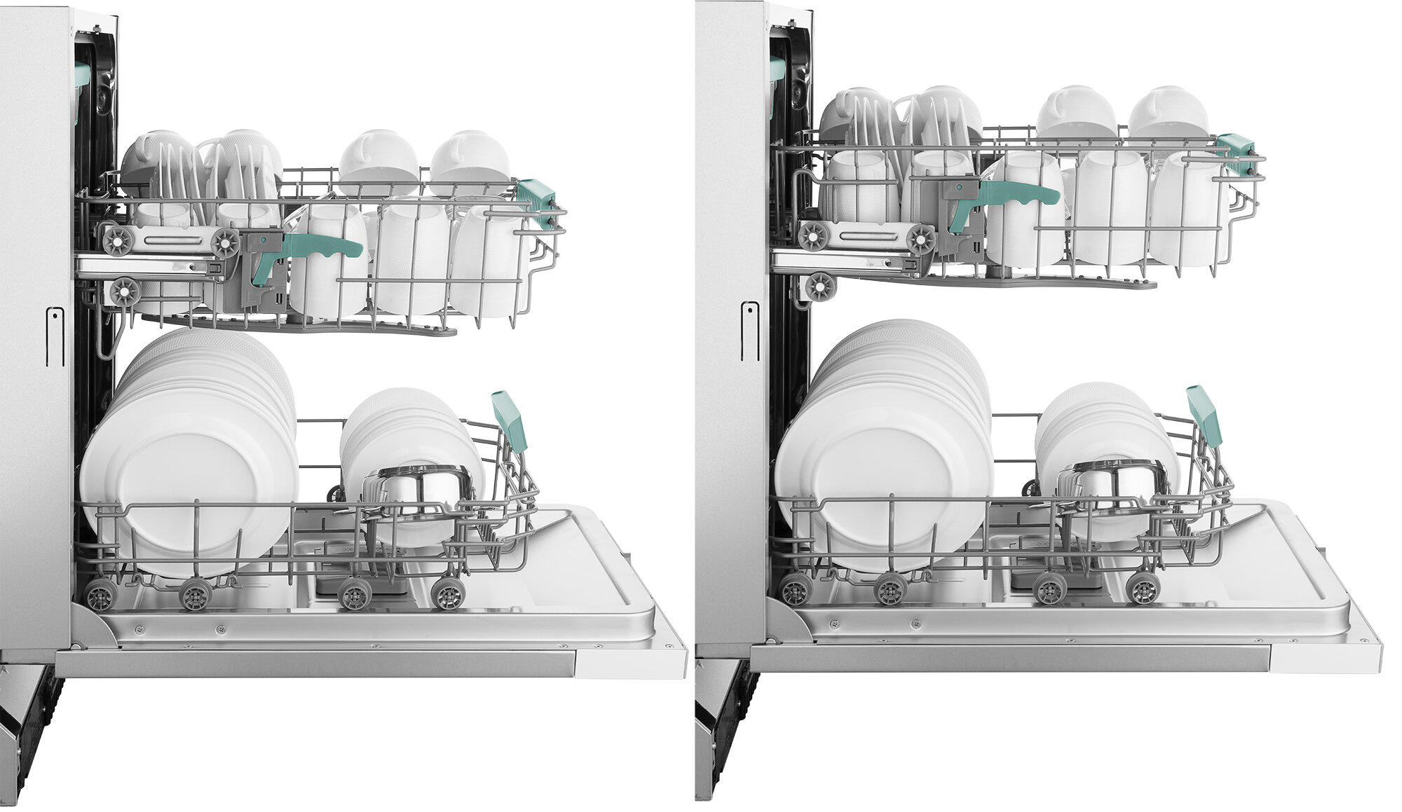 Среднюю корзину можно регулировать по высоте, чтобы помещались высокие тарелки.