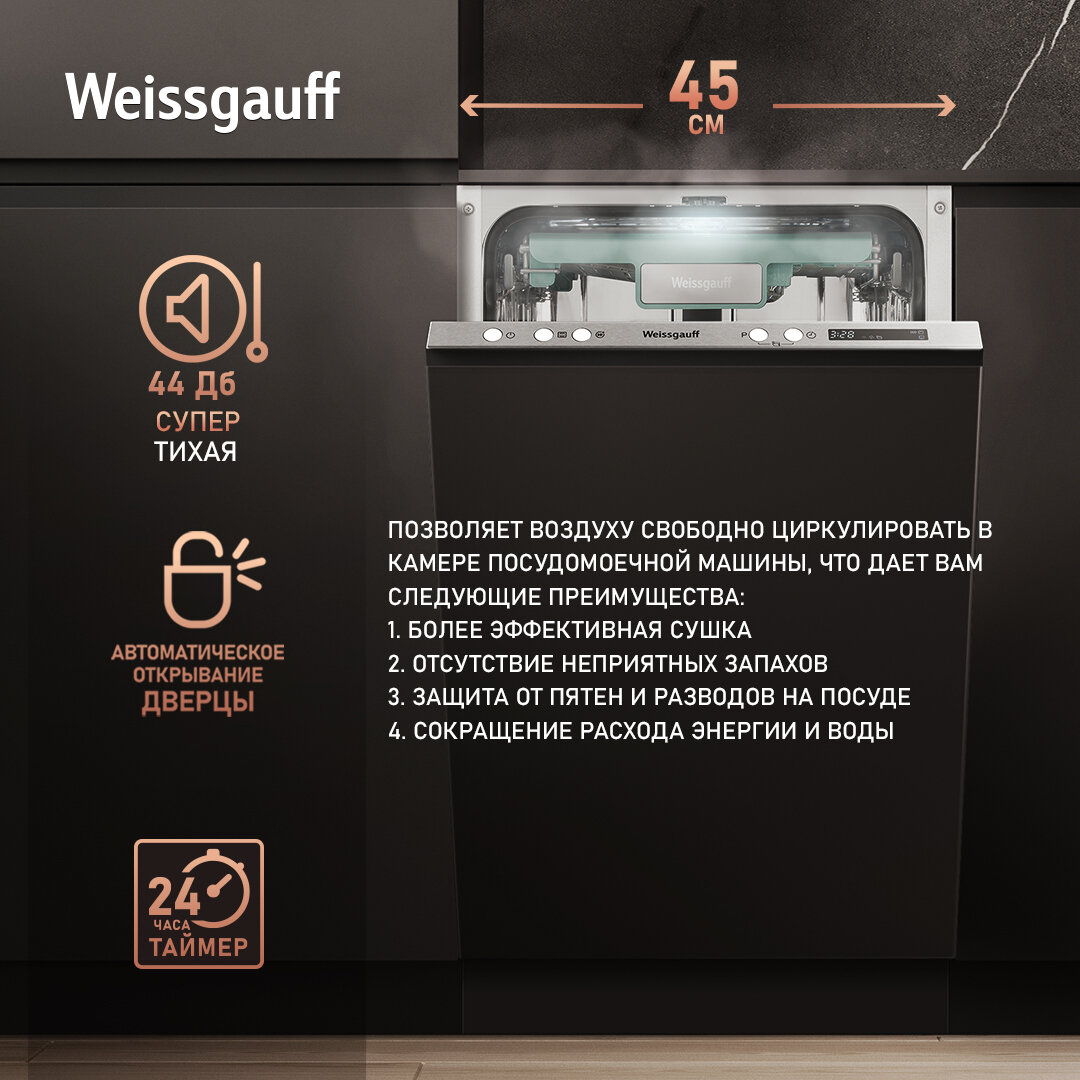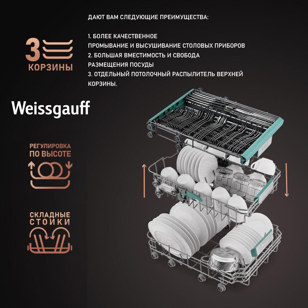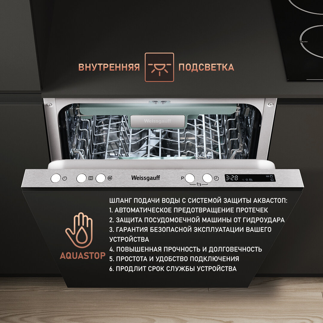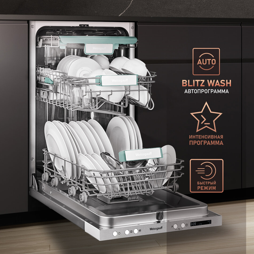 Встраиваемая посудомоечная машина с лучом на полу, авто-открыванием и инвертором Weissgauff BDW 4573 D (модификация 2024 года),3 года гарантия, 3 корзины, 10 комплектов, 7 программ, Внутренняя подсветка, Полная защита от протечек, Дозагрузка посуды интересное: