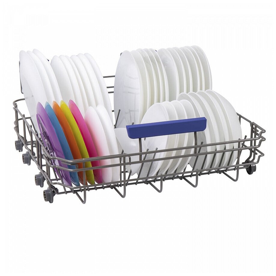 | Минусы: | В нижней корзине второй ряд подставок для посуды складной, но складывающийся механизм не крепко фиксируется, нужно постараться чтобы уложить посуду и стойки не сложились.