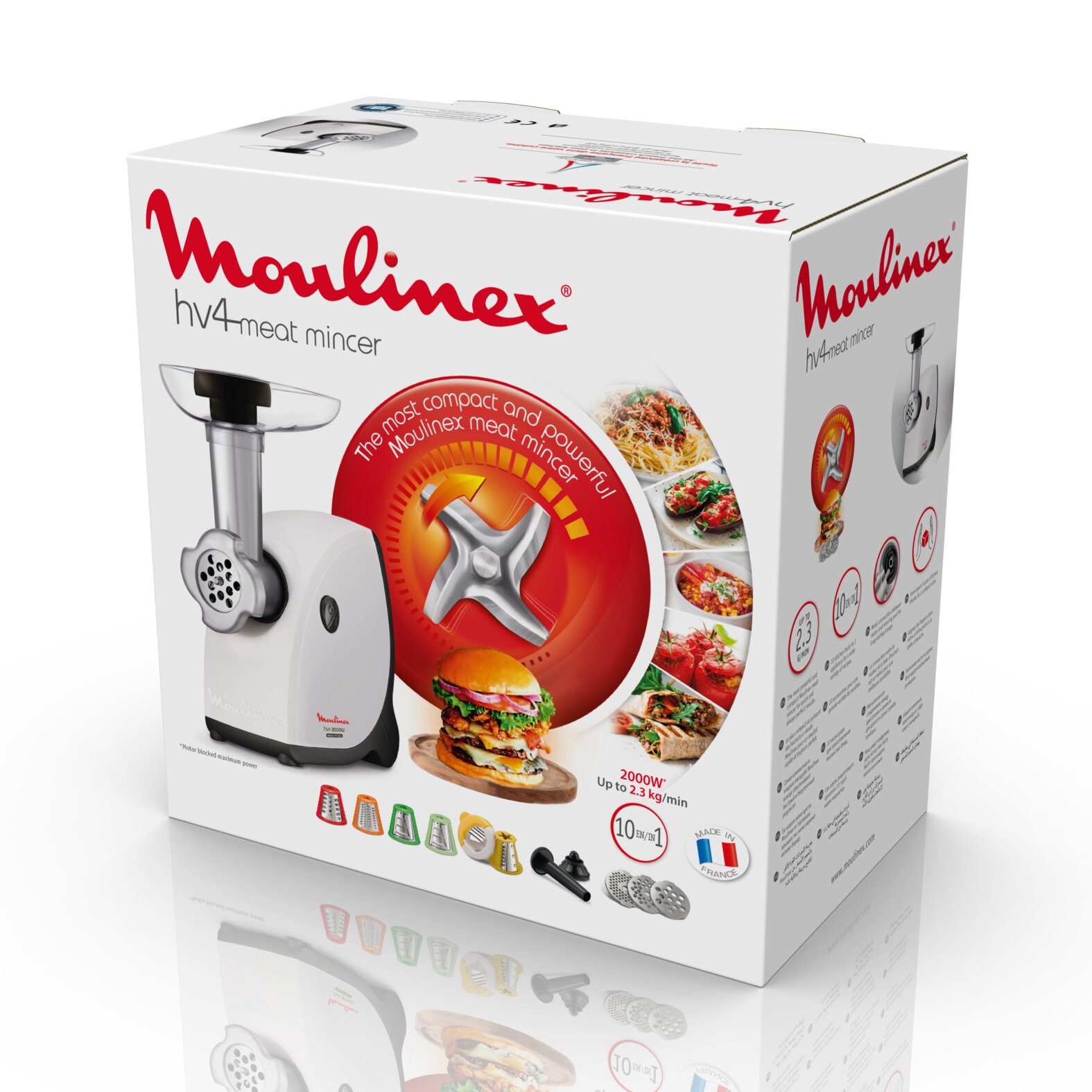 Купить Электрическая мясорубка Moulinex HV4 ME478138, с 10 насадками, 2000 Вт, 2.3 кг/мин, Франция, белая