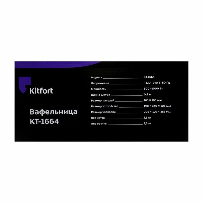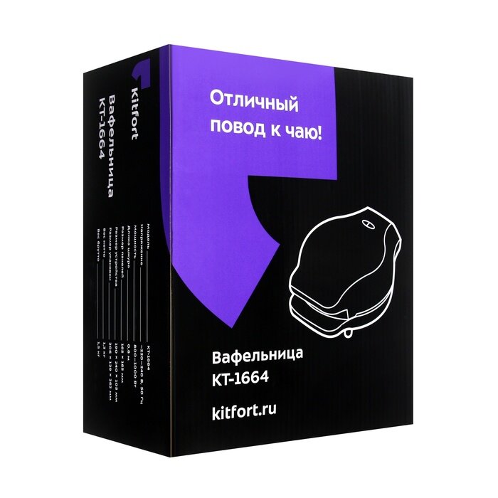Купила вафельницу на замену старой, так как к ней начало прилипать тесто, пользовалась ею регулярно, дети любят вафли. Искала недорогую и выбрала фирмы Kitfort, так как есть уже техника этой фирмы. Вафли получились темные, на фото видно, может, потому что долго она стояла включена, я решила её прокалить перед первым использованием. Перед выпеканием немного смазывала маслом, так как в тесте масла не было и все равно вафли немного прилипли, посмотрю, как будет дальше. Упакована хорошо, в коробке плотно лежит, так как есть пенопласт. Будем пользоваться с удовольствием, надеюсь, не один год. Спасибо.